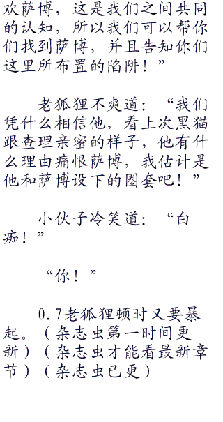 萨博洒然一笑,道:“哦?没想到你还听说过我呢,对此我感到非常荣幸!”