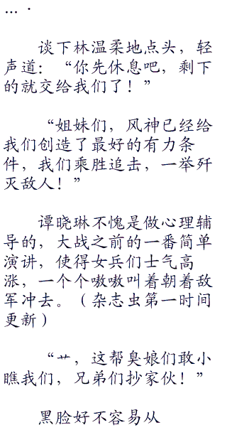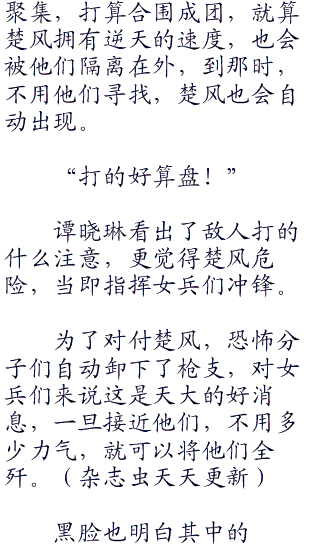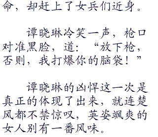 远处的谭晓琳没想到地方这么机智,暗呼不好,当即命令女兵们准备作战。