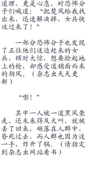 凌厉的风声随后而至,恐怖分子们刚刚摆好的阵势,却诧异地共三起来。
