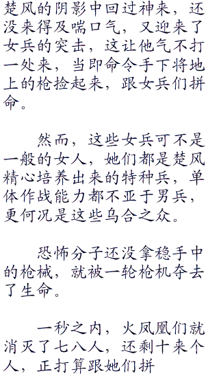 恐怖分子之中还是又聪明的人,步枪的强度明显不适合近身战,况且他们的人数太多,一旦被楚风突进来,难免会伤到自己人。