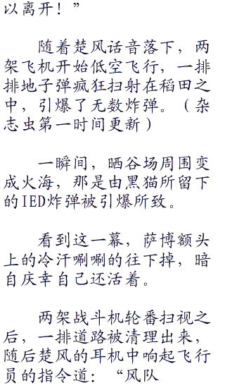 休息了一阵,黑猫方向又是喊杀声阵阵,众人无奈,只得接着抵御敌人的疯狂进攻。