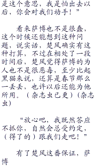 老狐狸无奈,原本萨博就跟他们不是一伙的,他想做什么,自己也拦不住,只是楚风还没回来你,这个主意他拿不准。