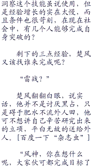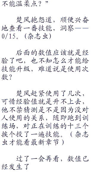 不过,在寻找半天后,还真让楚风找到一个便宜的技能——洞察。
