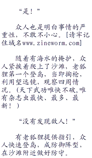 “前方一海里处,就是虎鲨岛,都给我注意好周围的动静,一旦发现敌人的身影,不准登岛!”
