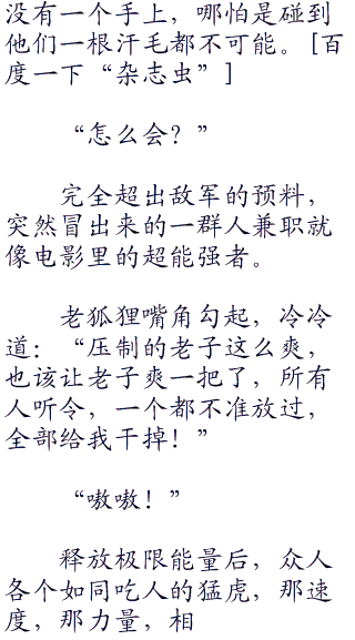 老狐狸干咳一声,转而对身后的男兵女兵们喊道:“卧槽,一紧张忘了前段时间的训练了,兄弟姐妹们,老大发话了,可以用那一招了,给我冲啊!”