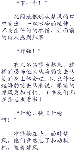 子弹不断的击打在火凤凰和风神小队每个人的身边,然而,就算是身在枪林弹雨,却
