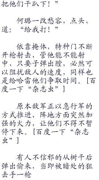 说完,哈雷对两个女兵招手,三人头也不回的绕过敌军视线,消失在了树丛间。