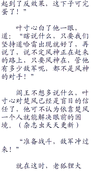 老狐狸神色凝重,道:“没办法了,只有坚守阵地,尽量延迟敌人的推进速度,等待风神救援,我相信,只要风神能够及时赶到,我们的伤亡会大大减少!”