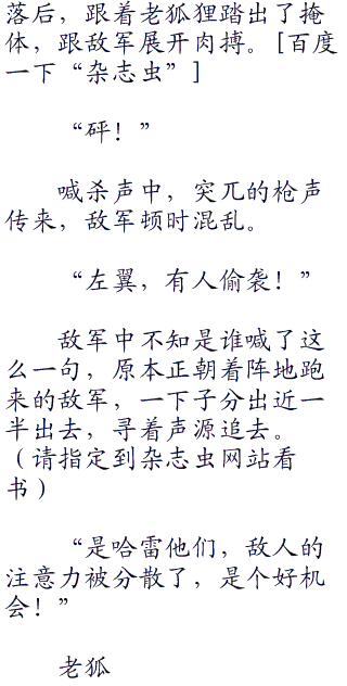 暴雨一般的子弹劈头盖脸的砸来,老狐狸等人只能窝在掩体后躲避,偶然开上两枪,也不过是意思意思。