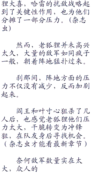 哈雷作为突击手最为明白其中的危险,以敌军推进的速度转眼便到。