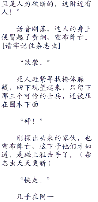 阎王的警觉性很高,就算是一公里开外,他也一样能够感觉得到,也许这就是一个资深的狙击手应该具备的能力吧。