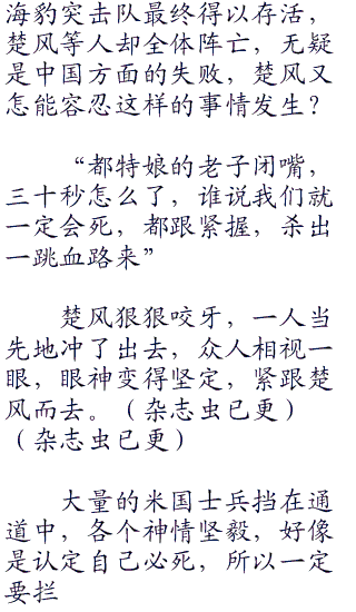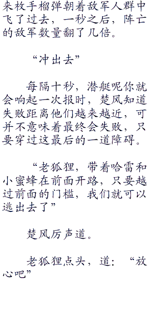 顺利得到潜艇中米国指挥部的地点,楚风带人一路杀了过去。