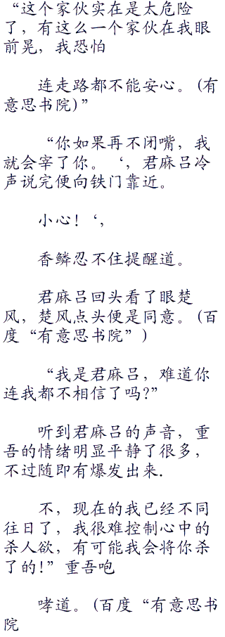 “那这么说,重吾也不想杀人啊,可怜的人。‘,香鳞同情道。
