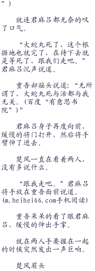 铁门重重关上,楚风等人相互对视一眼,很不理解重吾的行为。
