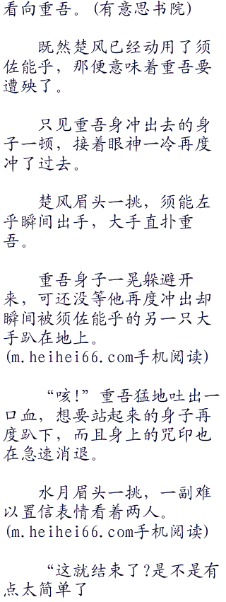 楚风嘴角微翘冷笑着向重吾缓步走去。