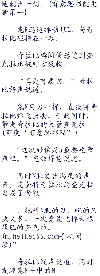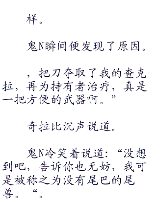 “嫂!”奇拉比猛地将短剑掷出。鬼N侧身闪躲。