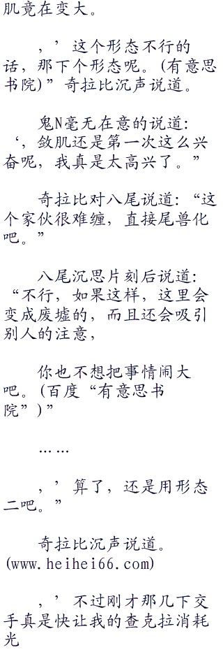 奇拉比完全没有在意鬼敛与楚风的关系,现在的他战意冲天,无论如何也要同对方大战一场。