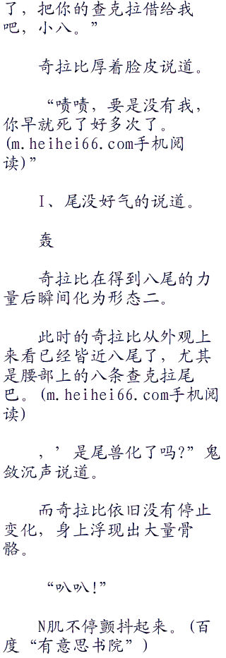 “你这家伙,竟把我的查克拉,给吸走了!”奇拉比恶狠狠的说道。