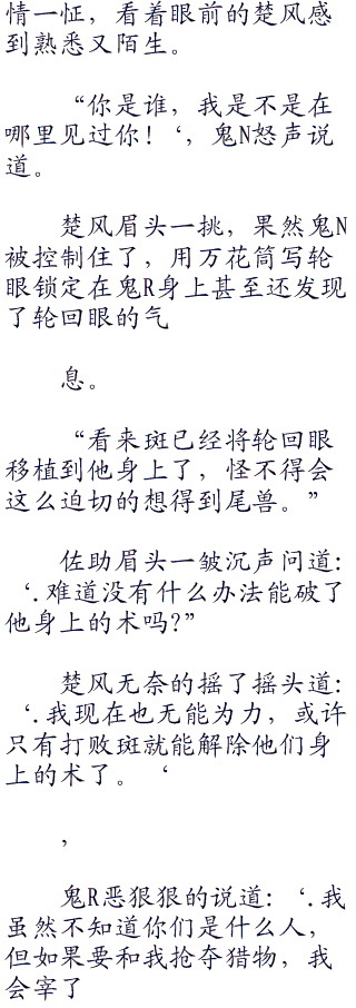 “你好像很难受啊。我猜你差不多到极限了把。‘,鬼R恶狠狠的说道,同时他的身子再度膨胀