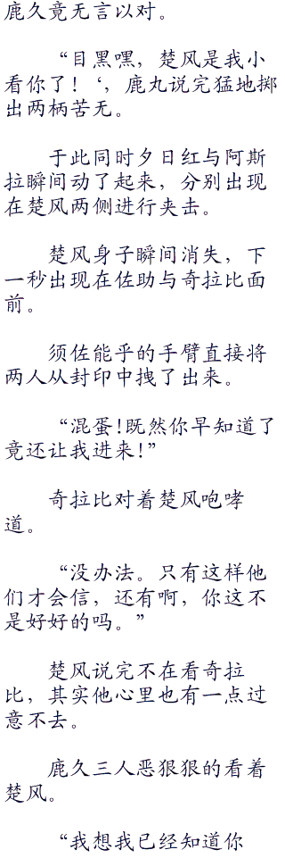 楚风等人缓步走在前方,而鹿久等人却走在几人身后。