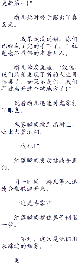 红莲缓步从一棵树后面走出,冷眼.着四人说道:.是兜将你们放出来的吧,省来你们已经成为他的手下了。”