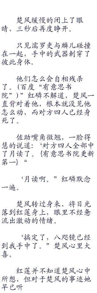 接着佐助又想到了什么,开口说道:“对了,提醒你,不要省楚风大哥的眼睛。”