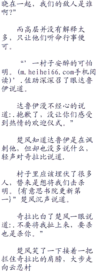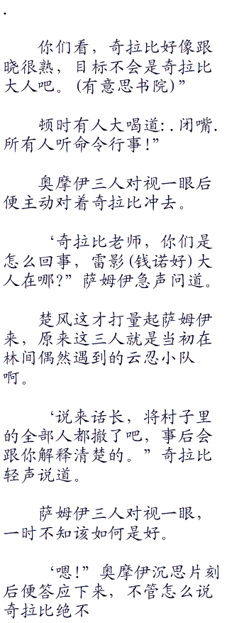 奇拉比环视四周说道:‘好了,我们到村子里再说吧。‘,