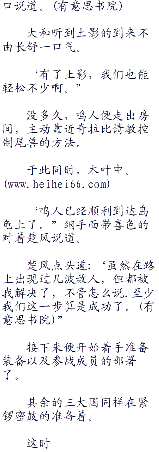 基见有了鸣人的反应后便知道奇拉比已经完全吸引了他的注惫力,于是趁热打铁,急声说道:‘这座岛,同时也是杀人蜂大人为了控制尾兽进行修炼的地方。”