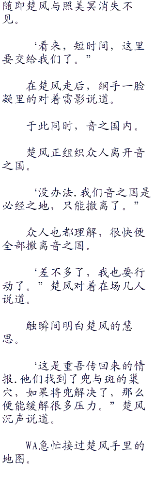 对了,楚风不是晓的人吗,似乎还是叛忍啊,怎么由这样的人担任最高统帅啊。“
