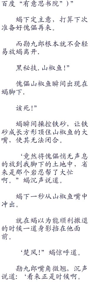 同时作为傀侣师,勘九郎迫切的想与蝎进行一场对决。
