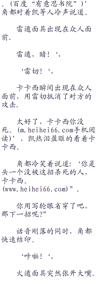 你竟然能a清我结的印,还有这么强的雷顿术,我明白了,你就是卡卡西吧。‘角都缓声说道。