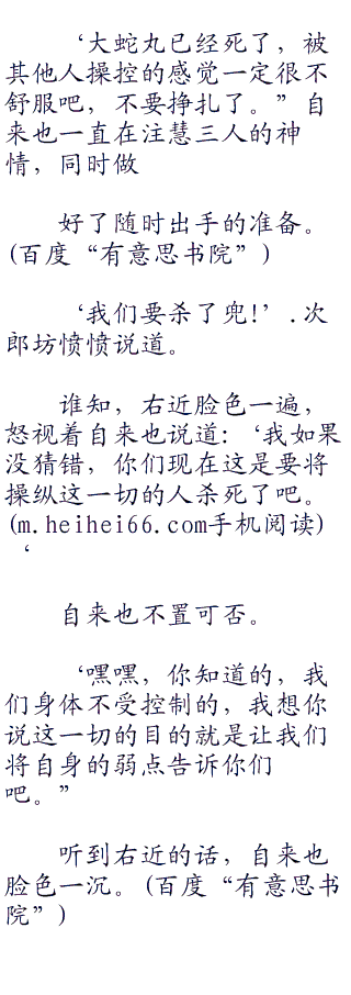 角都饶有兴趣的省着卡卡西等人说道:.没想到竟被你.出来了,这些不同的心脏都是我从曾经和我交过手的忍者身上