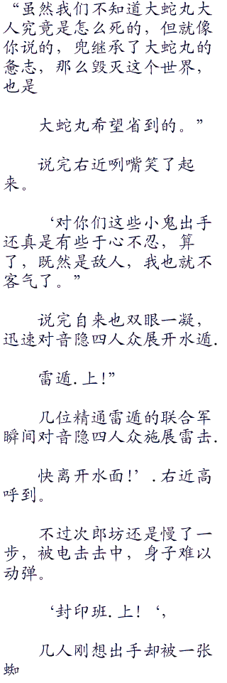 只能这样了,就算他是被控制的,如果此时不能抱着杀他的心,那么死的便是我们。”卡卡西怒声说道。