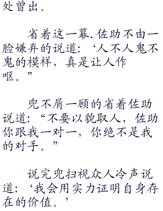 佐助不屑的石替兜说道:.少自大了,你这点小本事在楚风面前根本不值得一提。”
