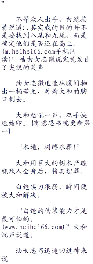 假曾的油女志微知道事情败露,也不再隐藏.身子突然蠕动起来,片刻后便韶出真面目来。