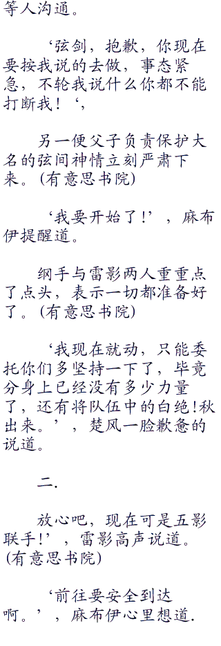 麻布伊知道现在情况危机.但她同样知道.如果火影大人再出现什么意外.那无疑是雪上加霜。”