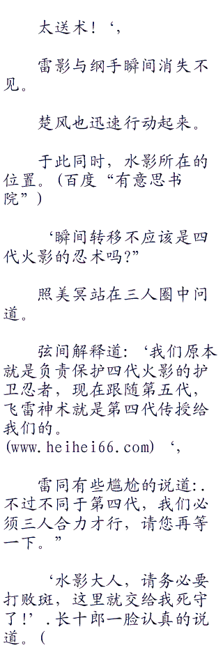 ‘我有个办法能让我们瞬间到达战场。”纲手说完看向一侧的麻布伊。w w w hei hei 66 c o br />