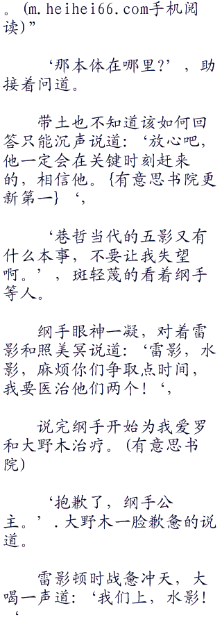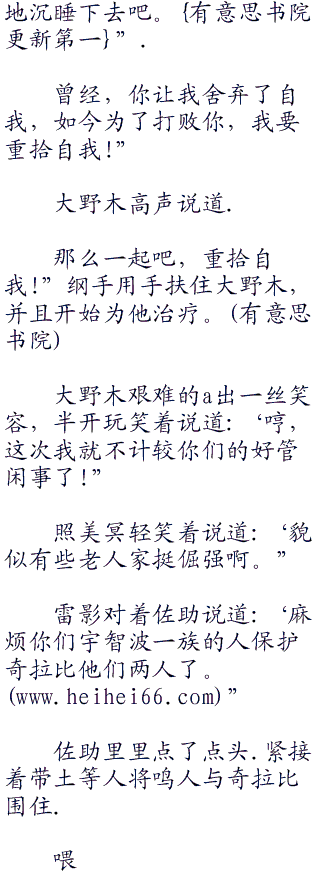 ‘我们忍者,一生无时无刻都献身战争,为了国家和村子,不停地战斗,从不顾及其他国家和村子,只有掠夺,最终憎恨滋生。’.大野木低着头说道。
