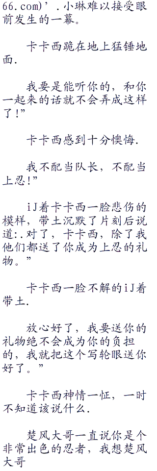 带土这时想起楚风的话:‘老是把自制心挂在嘴边的你不要只是光说,也要真的让自己的心变强!”