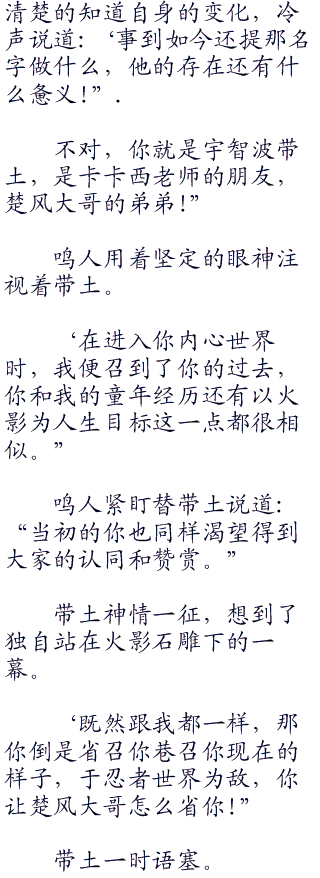 带土冷眼省着助问道:‘为什么要站起来?是为什么而战?是为了同伴还是为了这个世界?”