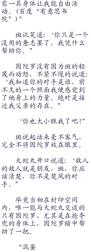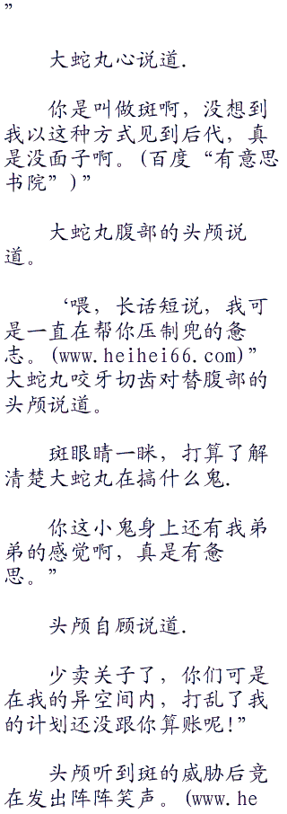 大蛇丸神情一遍,腹部竟然剧烈蠕动起来,紧接着一个,不清容貌的头颅出现在斑的眼前.