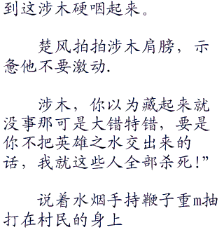 村民见无法挣脱,只能对,水烟大喊大叫:‘你这混蛋,难道是想支配村子吗?”.