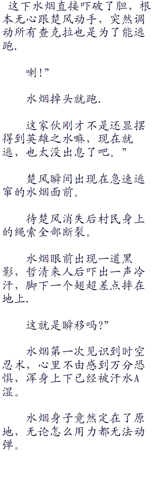 水烟全身立刻被蓝色查克拉包裹住,远.像是一团蓝色火焰。