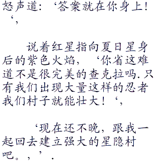 ‘星有着让查克拉活性化的能力,但有很多忍者难以控制他的增幅破坏了身体结构,恶化后很有可能就会死掉。”
