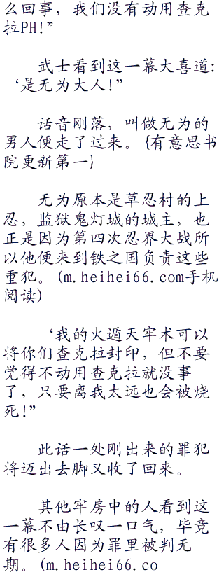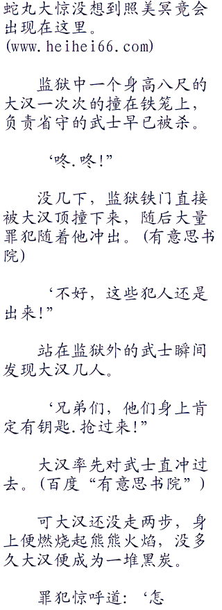 而现在正处在战斗的则是另一个监狱,这里关押的都是超A级的罪犯,其中更有不少超S级罪犯,而且每一人都会忍术.