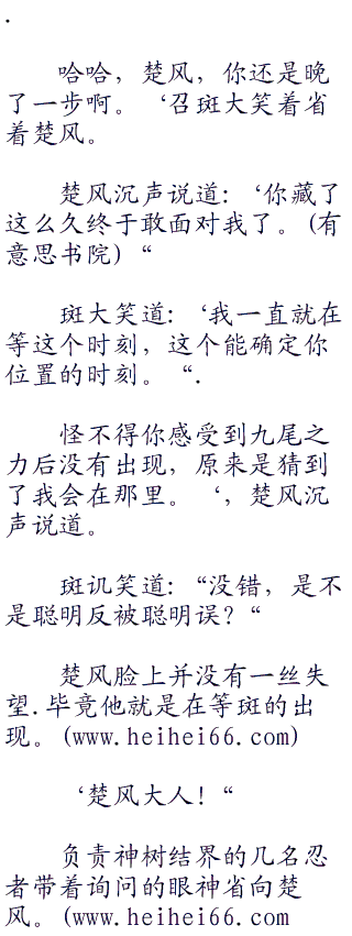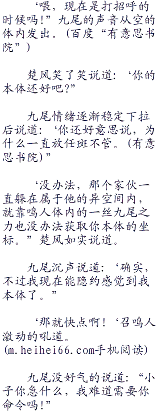 楚风出现在鸣人体内空间省着九尾说道:‘好久不见了。”