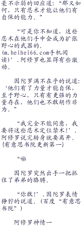 时间飞速,因陀罗与阿修罗兄弟两人成长的飞快,很快这两兄弟的名号便传遍了整个忍界。