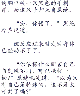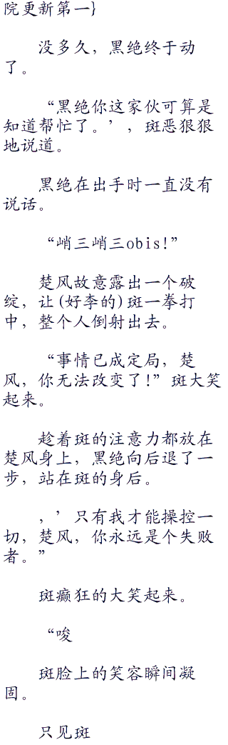 黑绝有着低沉的声音说道:“斑大人,看来没有我的帮助,您进行的很顺利啊。”