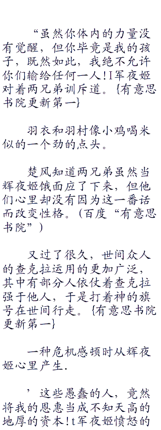 ,’母亲大人,我们发现世界上有很多有意思的人。”羽衣一脸兴奋的说道。有|意、思.书院