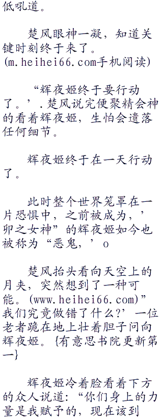 “你们与他们不同,你们是我的孩子,是将来支配这个世界的人。I军夜姬训斥道,言外之意是禁止兄弟二人与其他人划清界限。